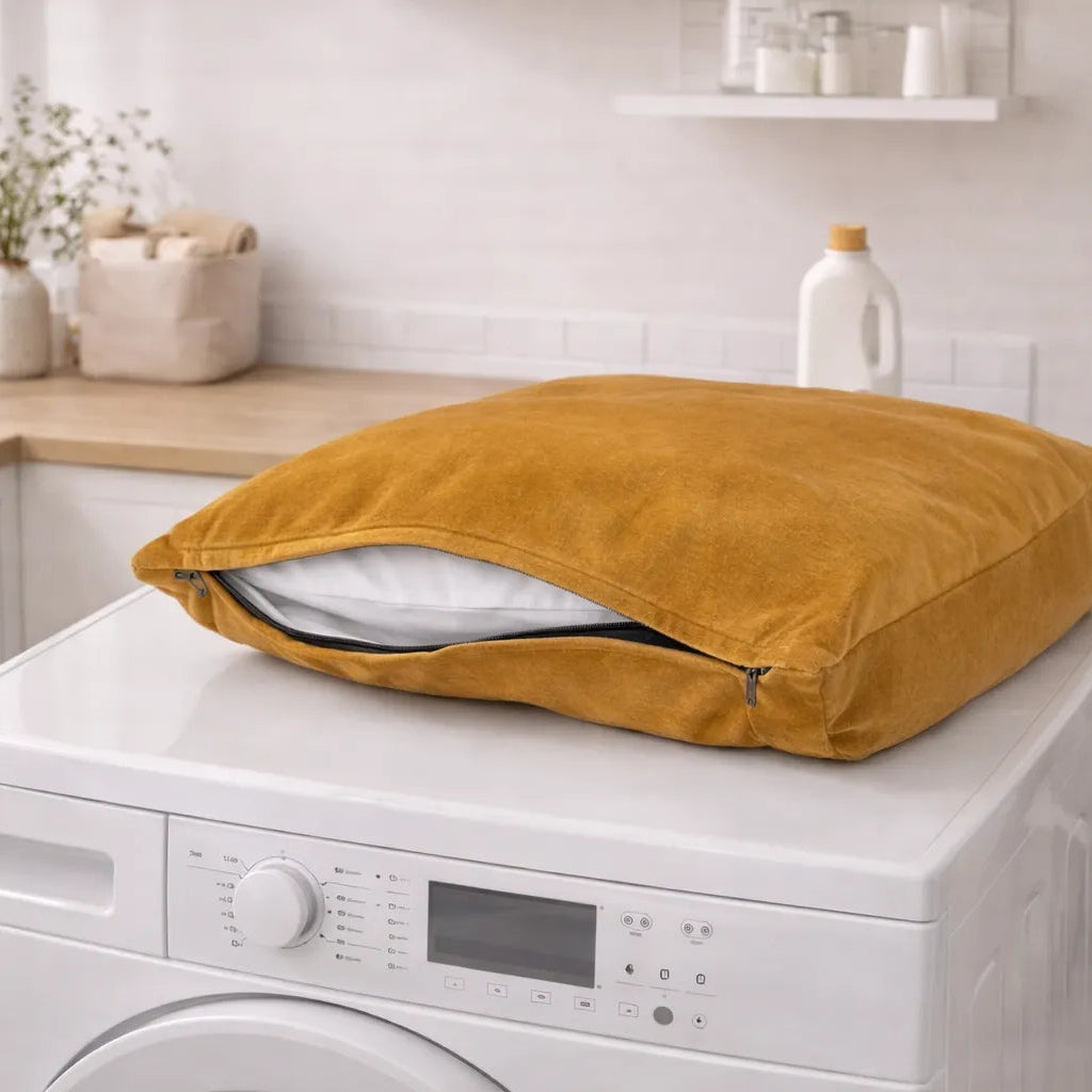 Zdejmowany pokrowiec. Możliwość prania w pralce. Hydrofobowa tkanina. Antyalergiczne wypełnienie. Wariant z wkładem ortopedycznym